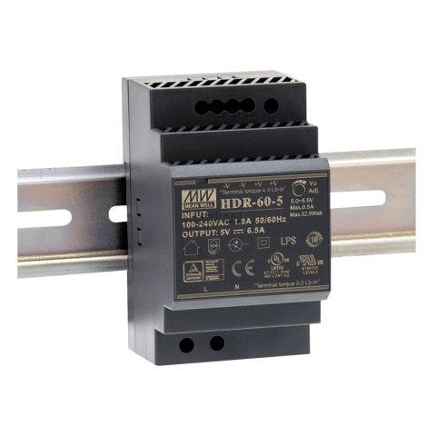 Alimentation à découpage mean well rail din / 12v / 60w / 4.5a / 52.5x90x54.5mm