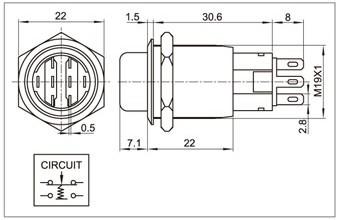 Commutateur rotatif en acier inoxydable 3 positions 4 poles 3a / 250vac d=19mm