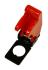 Capuchon de sécurité en plastique rouge pour interrupteur. Dimensions (LxlxH) 45 x 18 x 28 mm env..