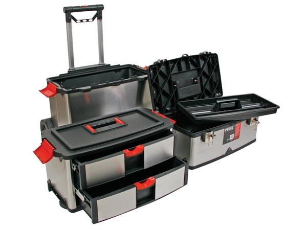 Avec cette valise à outils mobile de Perel, vous pouvez emporter tous vos outils partout où vous allez. La mallette est équipée de deux organiseurs en polycarbonate très robustes et résistants aux chocs dans le couvercle, d'un compartiment de rangement...