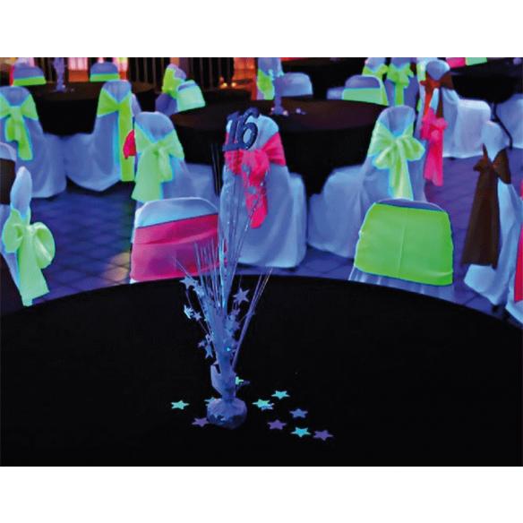 L’attraction sur toutes les fêtes ! La lumière UV crée un effet surnaturel lorsque la lumière noire se reflète sur des tissus blancs ou sur des peintures corporelles.